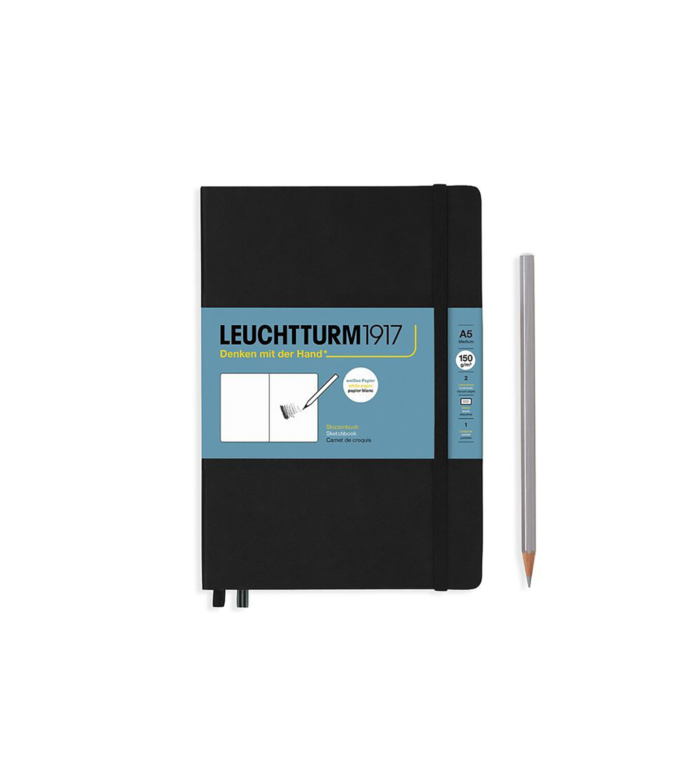 Leuchtturm1917 Sketchbook Medium (A5), Hardcover, 112 pages (150 g/sqm), plain, Black